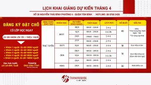 Lịch khai giảng các lớp học tiếng Trung tháng 4 tại THANHMAIHSK cơ sở quận 1 – Hồ Chí Minh đã có. Xem ngay để tìm kiếm lớp học phù hợp với nhu cầu và thời gian của bạn nhé ! Địa chỉ: 18 BIS/3A...