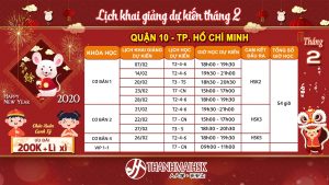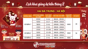 Lịch khai giảng dự kiến tháng 2/2020 các khóa học tiếng Trung tại THANHMAIHSK cơ sở 4 – Hai Bà Trưng đã có. Check ngay các lớp mà bạn cần để đăng ký học sớm nhé! Địa chỉ: 166 Trần Đại Nghĩa, Hai Bà Trưng, Hà Nội...