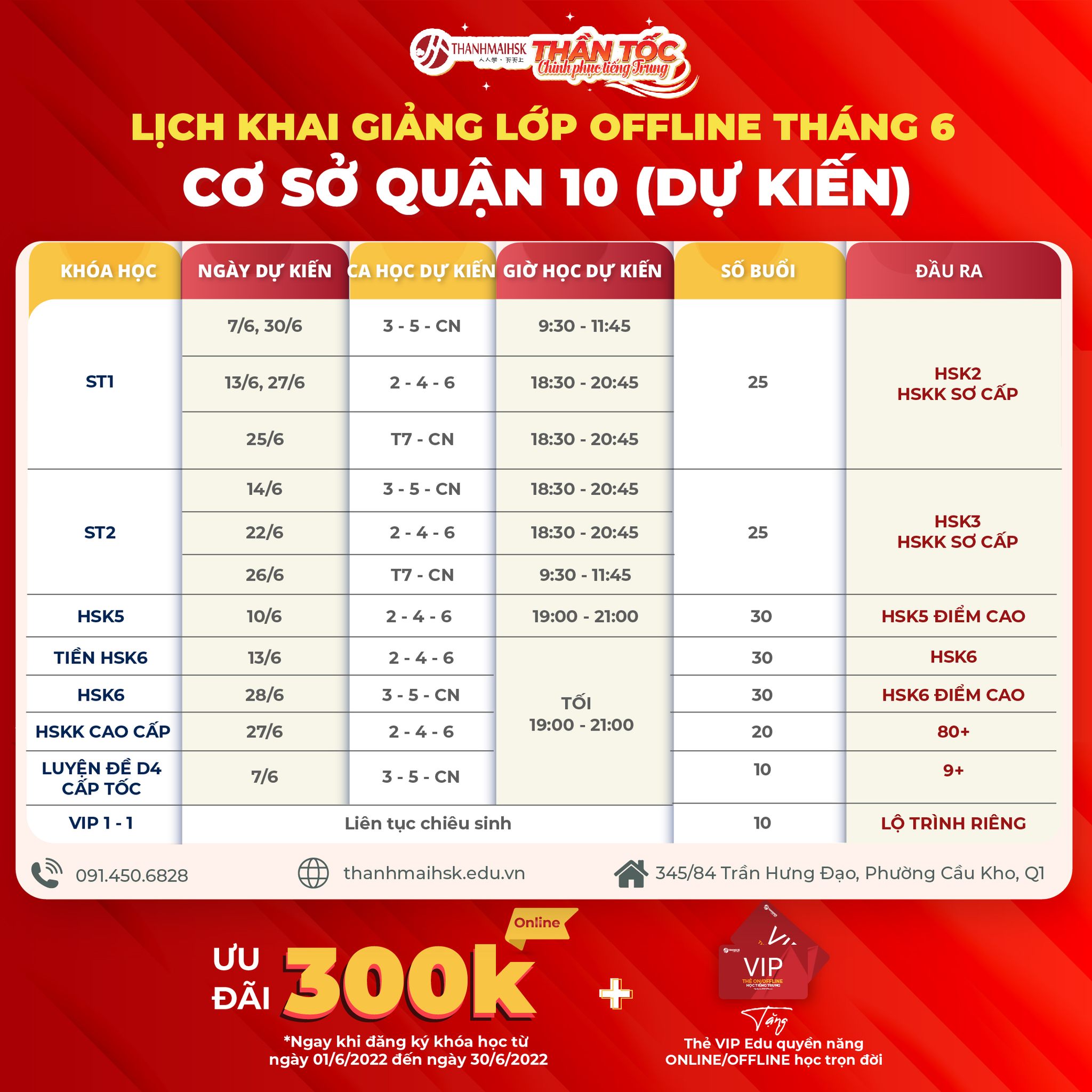 Trung tâm tiếng Trung THANHMAIHSK tự hào là trung tâm có số lượng học viên đông và chất lượng nhất. Giảng viên trình độ trên đại học, giáo trình chuyên biệt, cơ sở vật chất hiện đại và vị trí phủ khắp HN , HCM với 10 cơ sở.