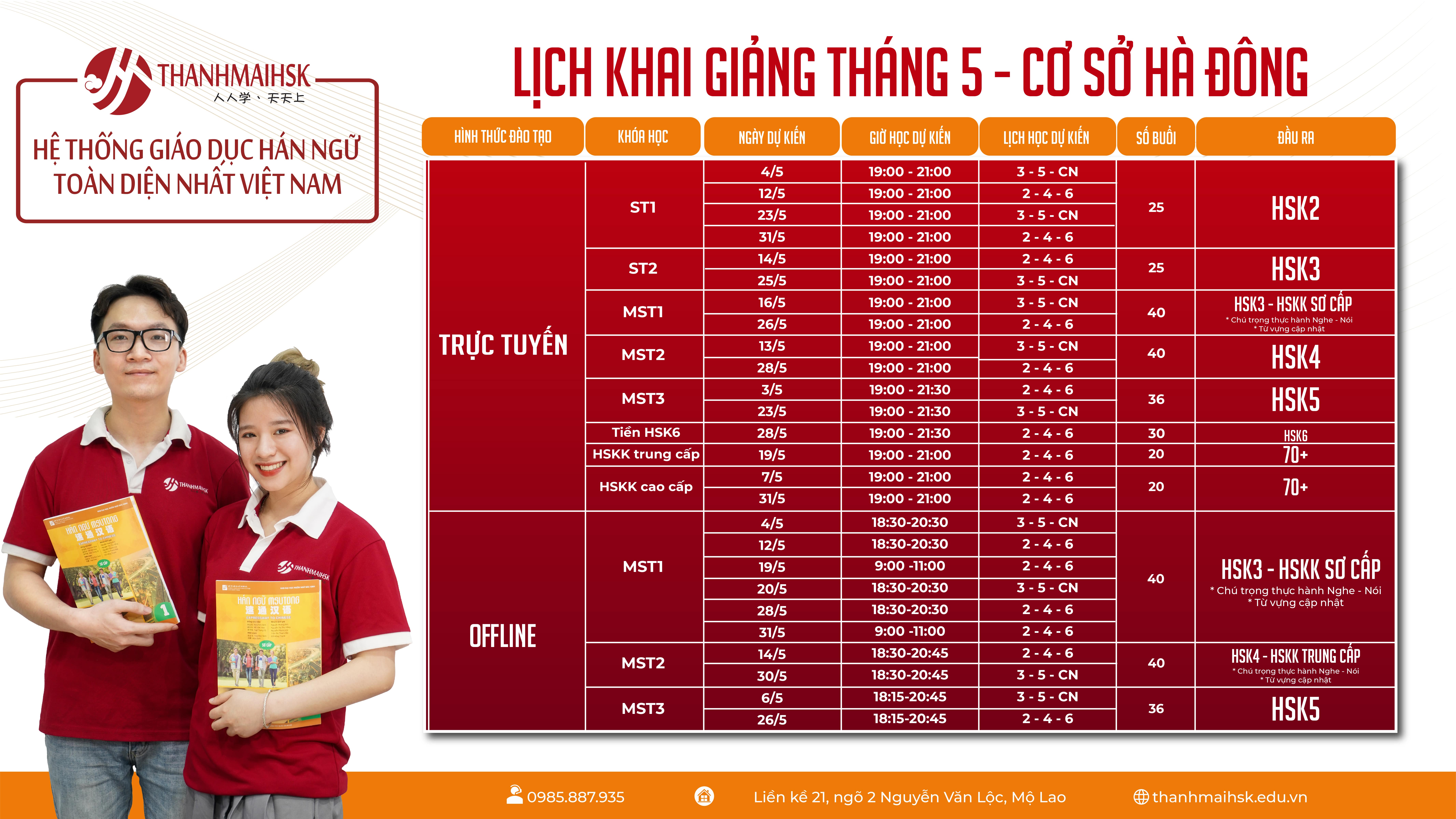 Trung tâm tiếng Trung THANHMAIHSK tự hào là trung tâm có số lượng học viên đông và chất lượng nhất. Giảng viên trình độ trên đại học, giáo trình chuyên biệt, cơ sở vật chất hiện đại và vị trí phủ khắp HN , HCM với 10 cơ sở.