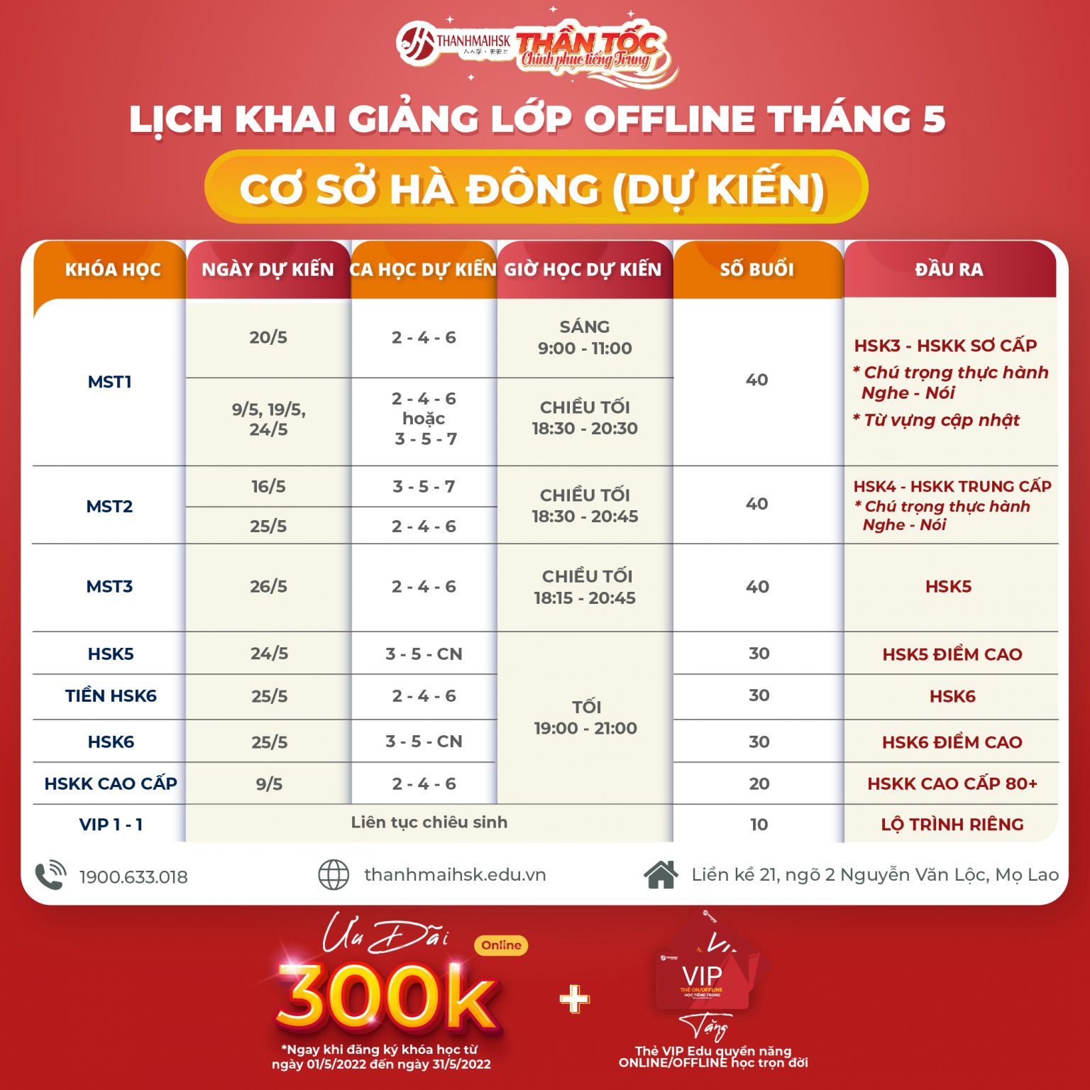 Trung tâm tiếng Trung THANHMAIHSK tự hào là trung tâm có số lượng học viên đông và chất lượng nhất. Giảng viên trình độ trên đại học, giáo trình chuyên biệt, cơ sở vật chất hiện đại và vị trí phủ khắp HN , HCM với 10 cơ sở.