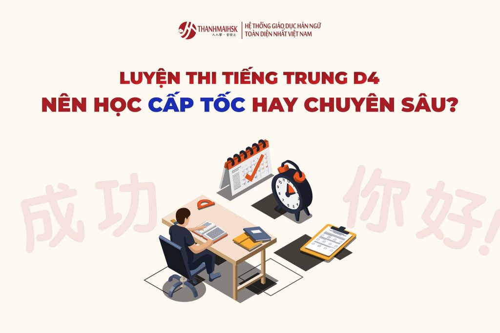 Đâu là thời điểm tốt nhất để các sĩ tử bắt đầu ôn luyện tiếng Trung thi D4? Có nên học cấp tốc không? Hay ôn luyện chuyên sâu theo lộ trình? Làm sao để học ôn thi không bị “chán & ngán”? Làm sao để luôn giữ được động lực khi học ôn luyện tiếng Trung D4? Và còn rất nhiều câu hỏi của các sĩ tử xoay quanh việc luyện tiếng Trung cấp tốc hay chuyên sâu! Cùng Thanhmaihsk giải đáp bằng bảng so sánh 2 phương pháp học ôn luyện tiếng Trung cấp tốc và học ôn luyện chuyên sâu dưới đây, để xem phương pháp nào là dành cho bạn nhé!