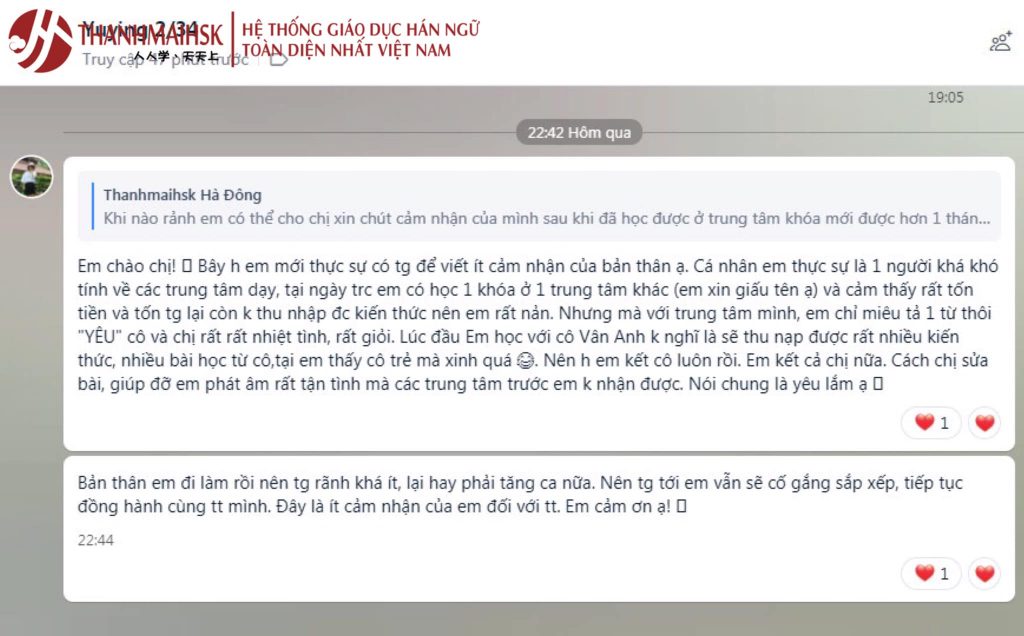 Các bạn học viên đã có những feedback chân thực sau khóa online tại Thanhmaihsk.